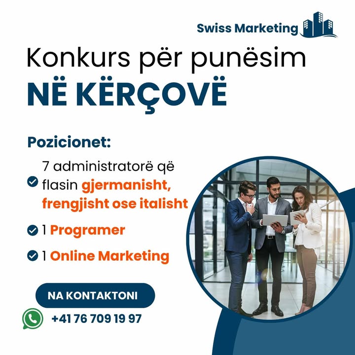 Për aplikim na kontaktoni në WhatsApp në numrin: +41 76 709 19 97